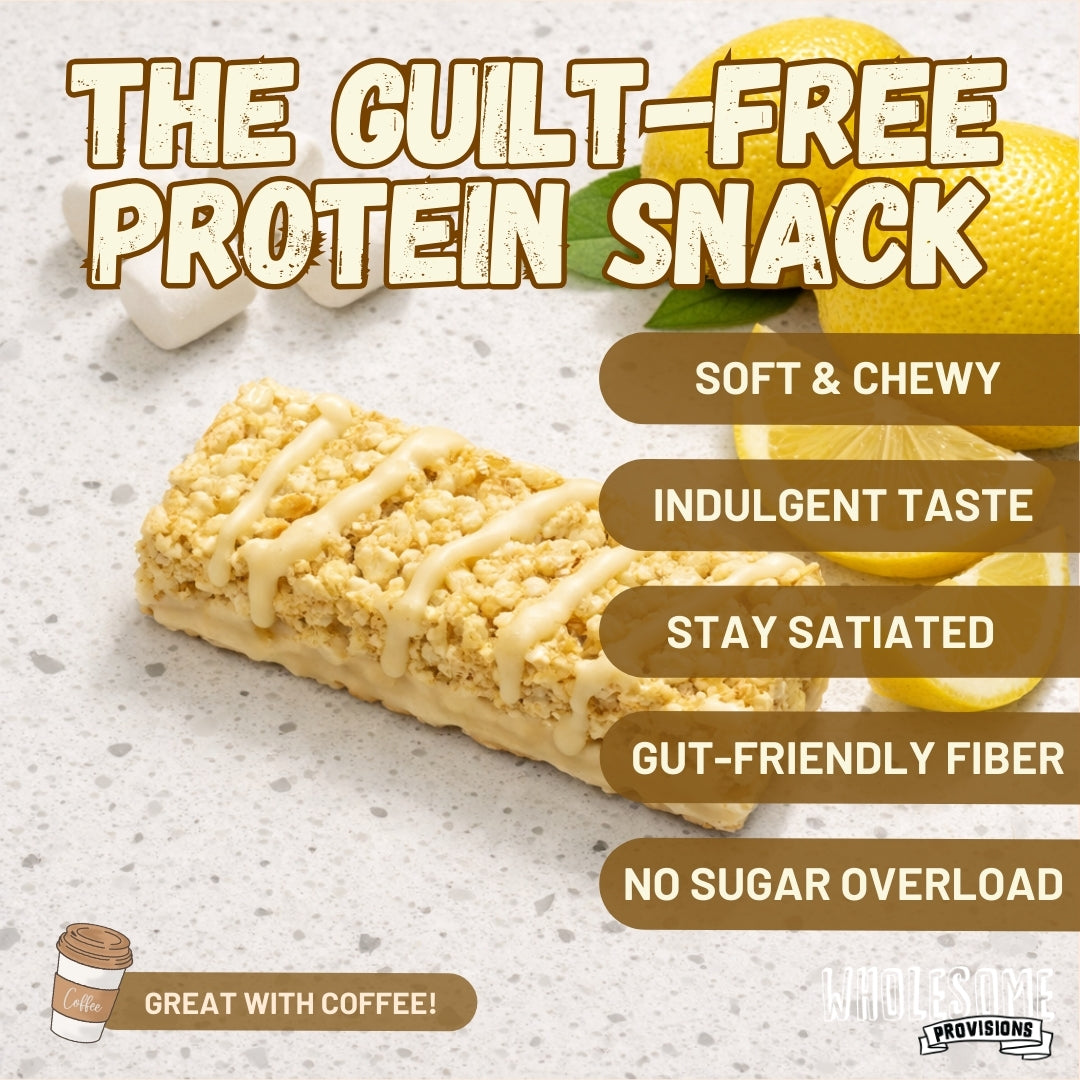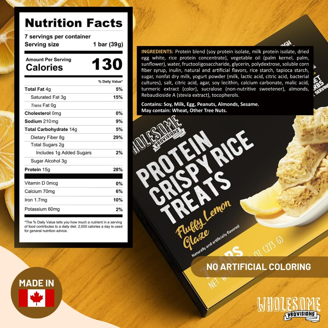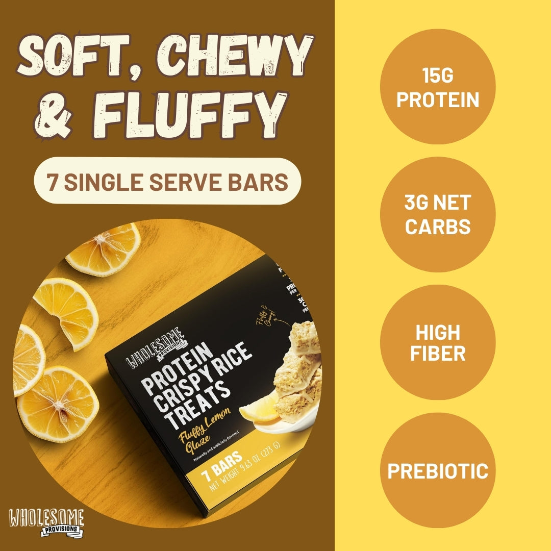 Lemon Glaze Protein Rice Crispy Treats - 15g Protein, Low Carb 4g Net, High Fiber, Soft & Chewy