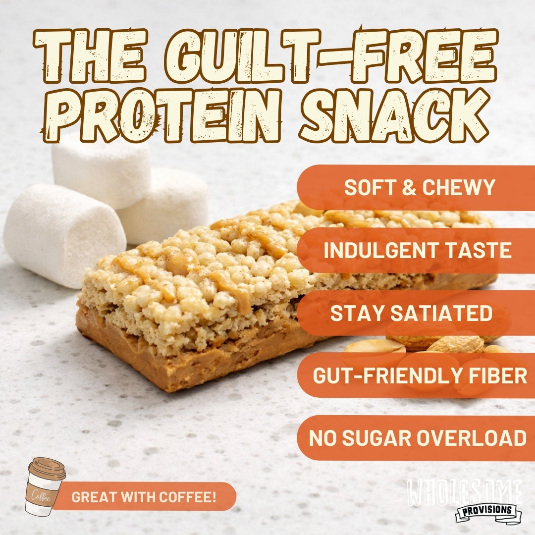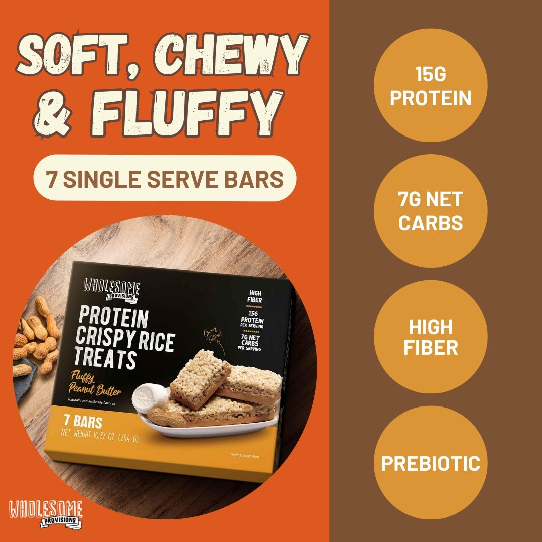 Peanut Butter Protein Rice Crispy Treats - 15g Protein, Low Carb 7g Net, High Fiber, Soft & Chewy
