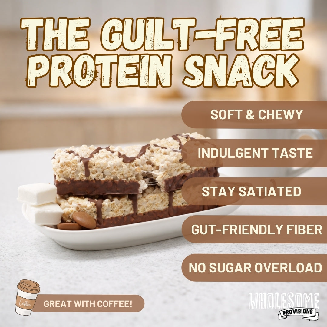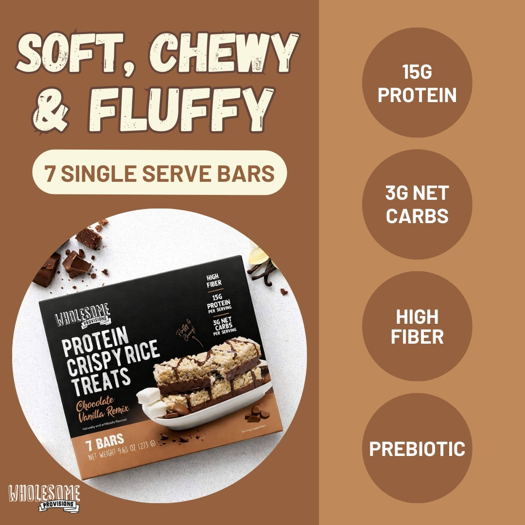 Chocolate Vanilla Protein Rice Crispy Treats - 15g Protein, Low Carb 3g Net, High Fiber, Soft & Chewy
