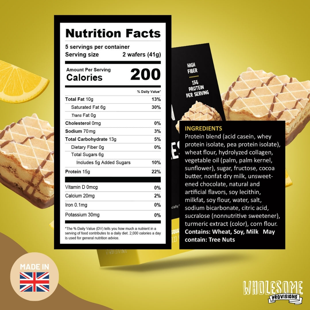 Lemon Protein Wafers Squares - 15g Protein, Low in Sugar, Light & Crispy